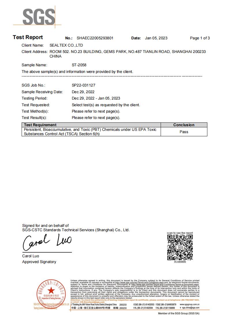 SealTex索拓 ST-2058通過RoHS和TSCA測試