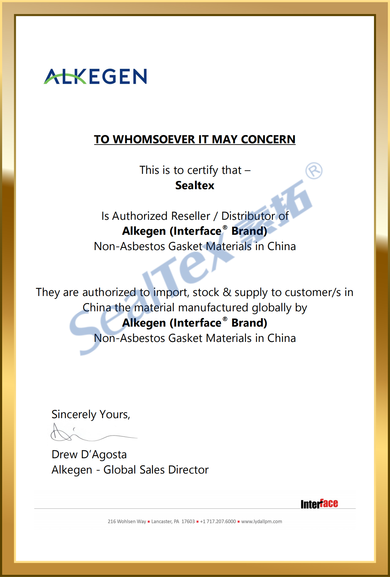 SealTex索拓為InteFace的授權合作伙伴